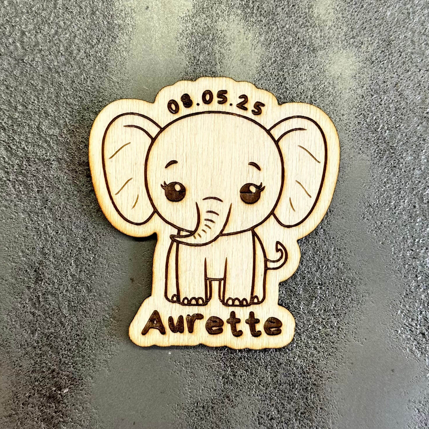 Célébrez une naissance avec douceur et poésie grâce à ce magnet personnalisé en bois, délicatement gravé du prénom de l’enfant et de sa date de naissance. L’éléphant, avec son regard doux et bienveillant, devient l’emblème de la force tranquille et de la tendresse, parfait pour célébrer une nouvelle vie.